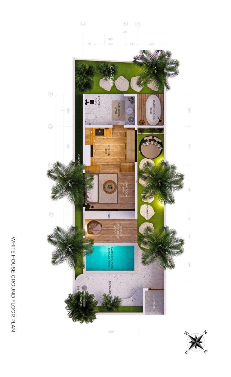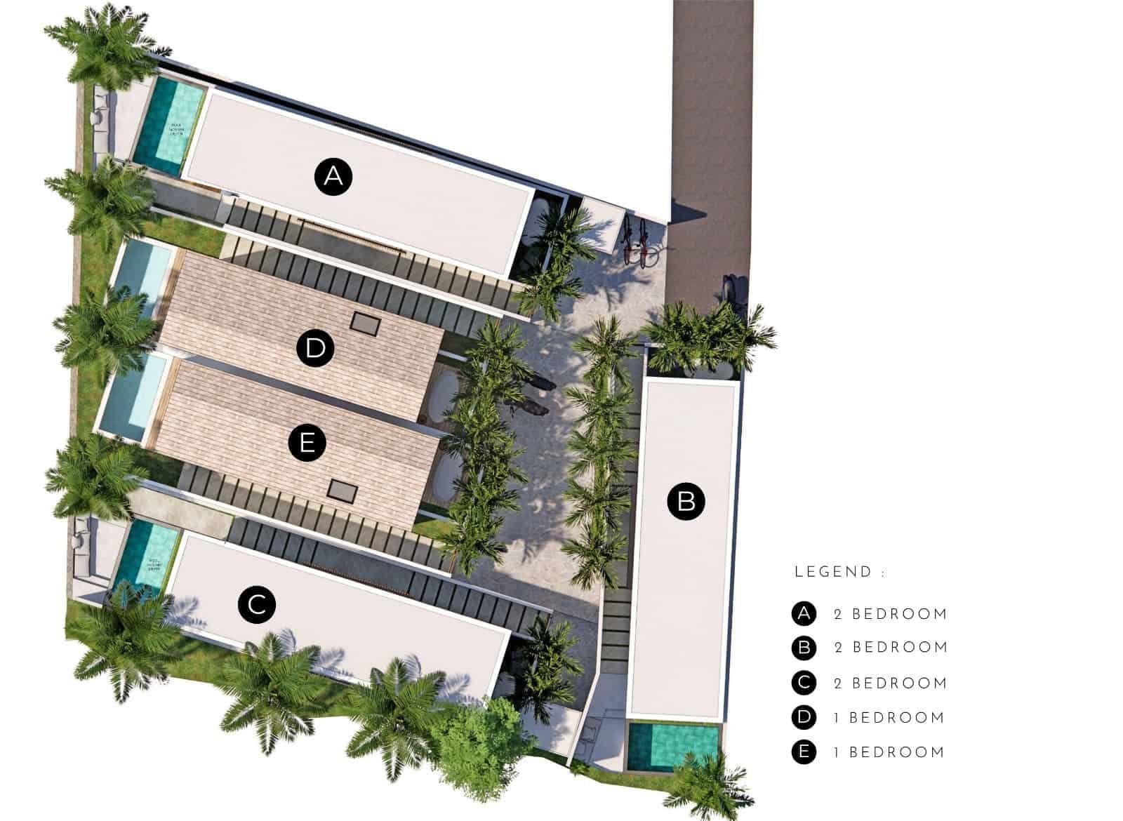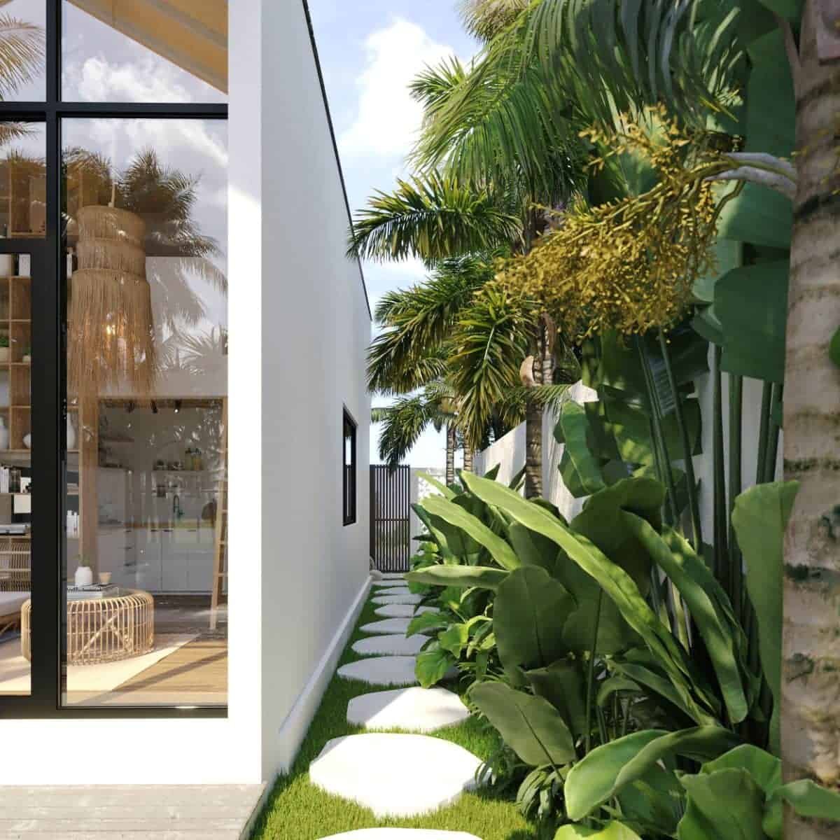 The white theme of these villas carries throughout the interior design, with eye-catching details and finishes spread throughout these cozy villas.