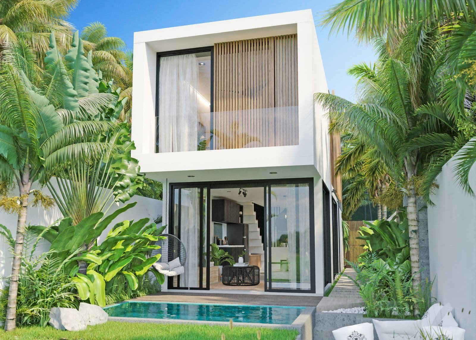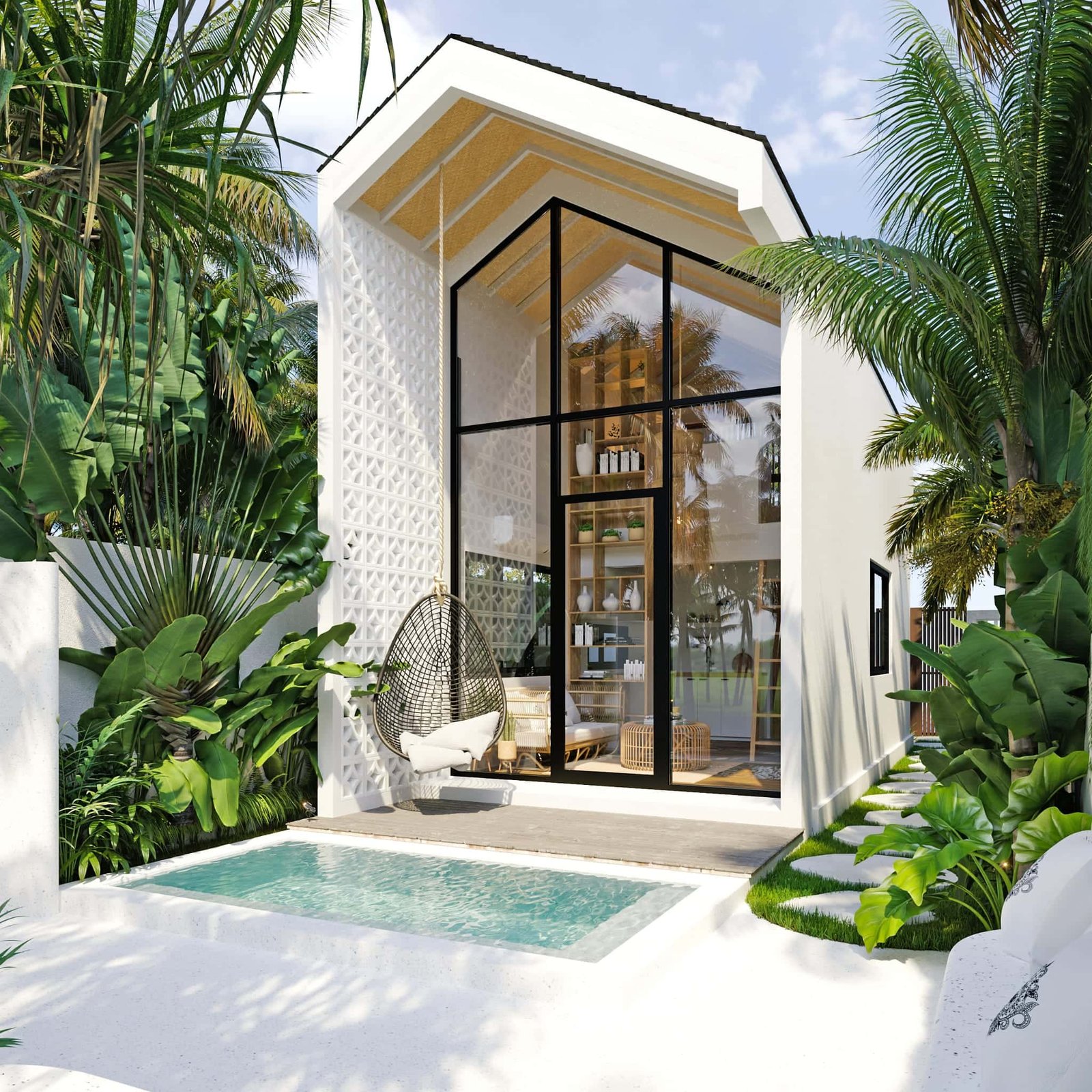 Our smart 1/2-bedroom home is the perfect holiday rental for Kolkata. With a double-height glass facade overlooking the pool, modern interior design and outdoor bathroom, these luxury villas are an exceptional rental investment.