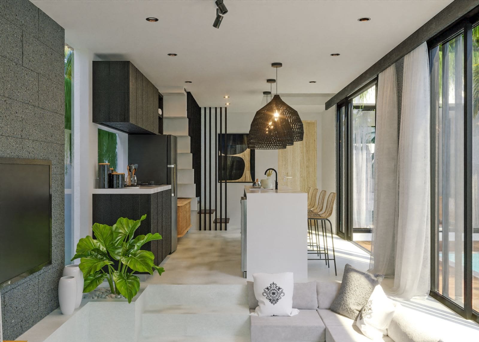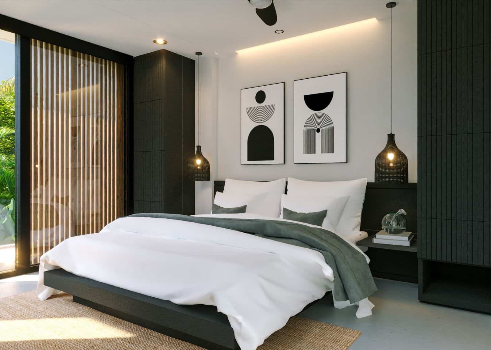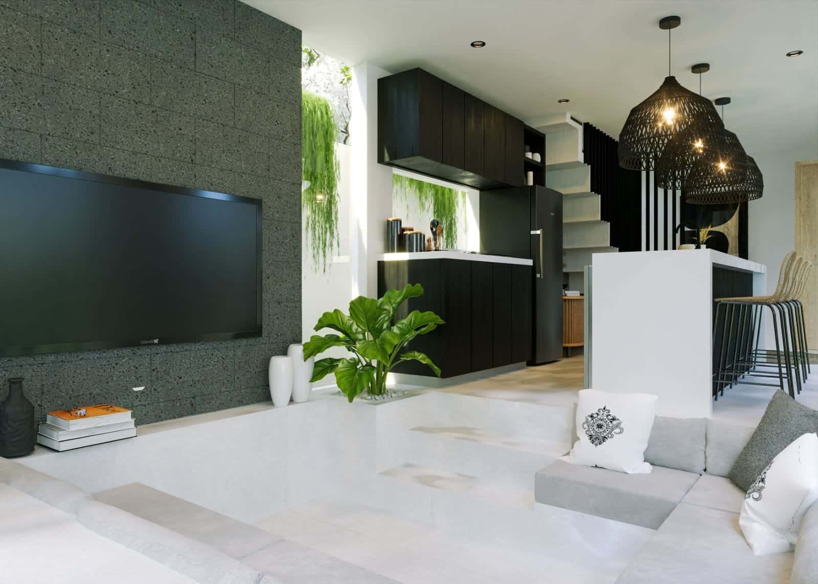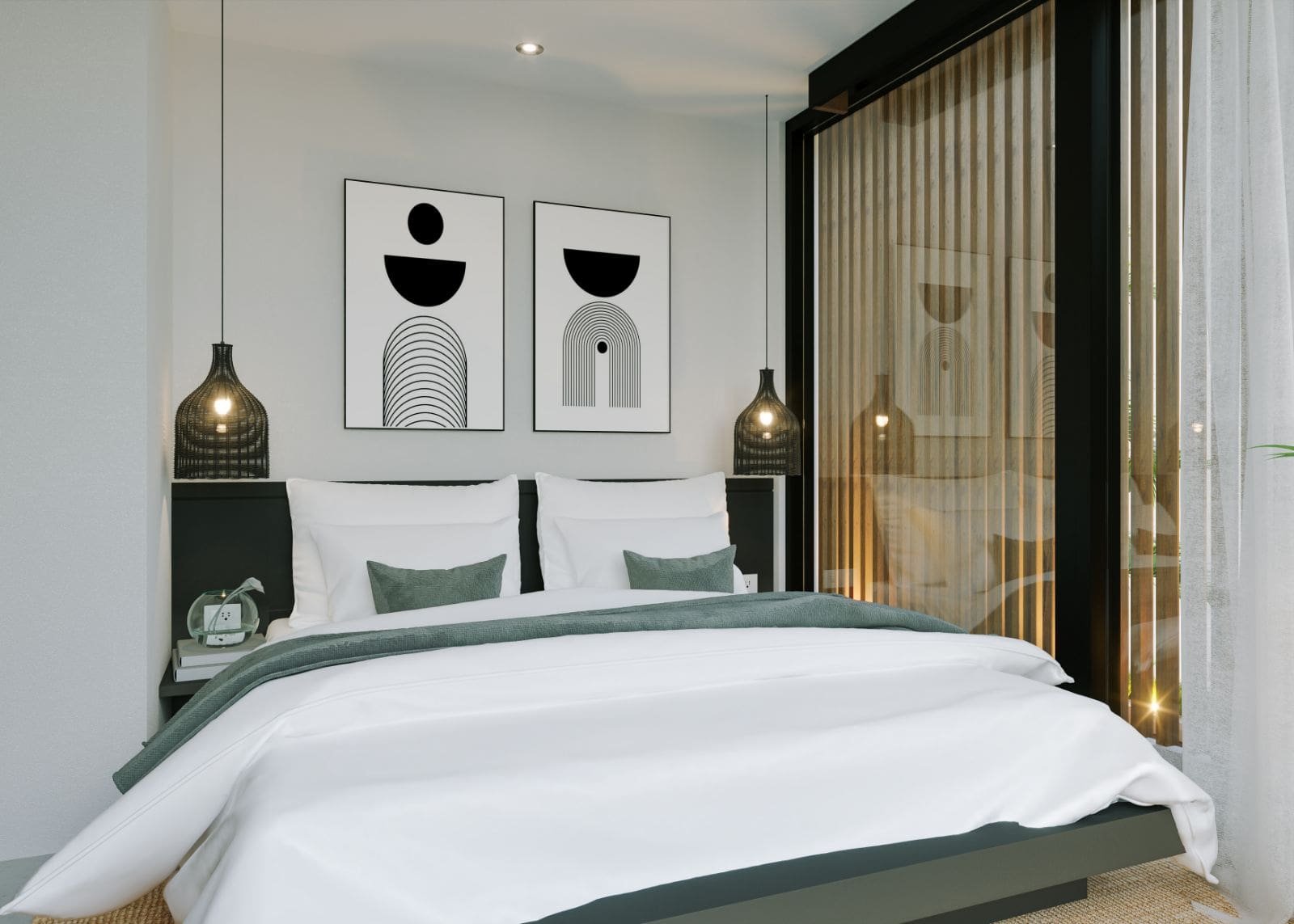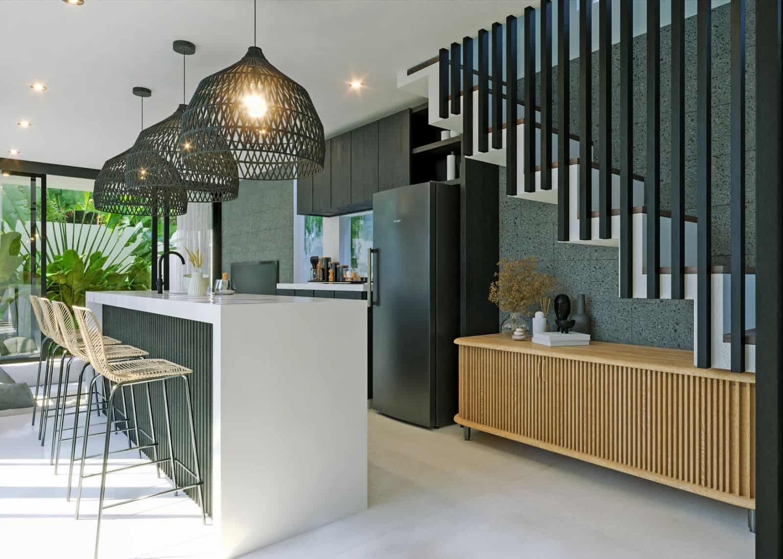 The white theme of these villas carries throughout the interior design, with eye-catching details and finishes spread throughout these cozy villas.