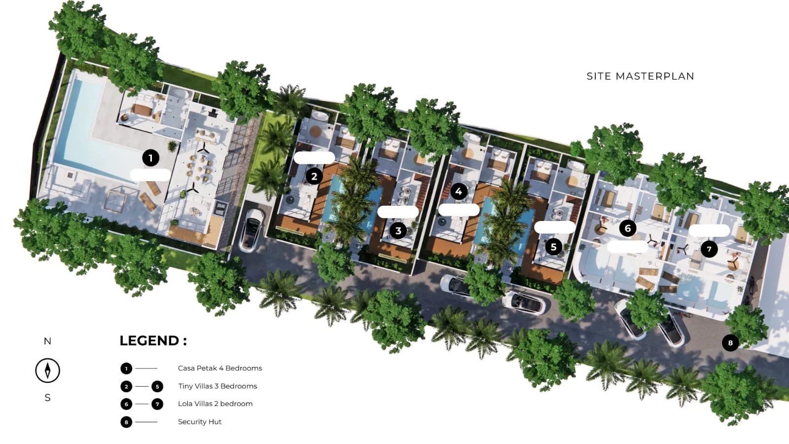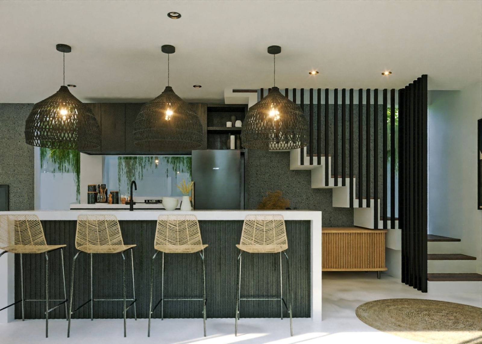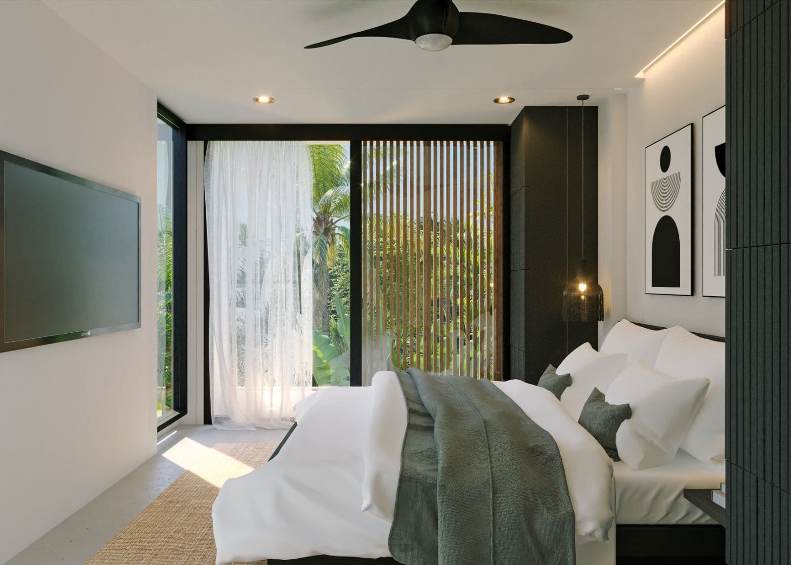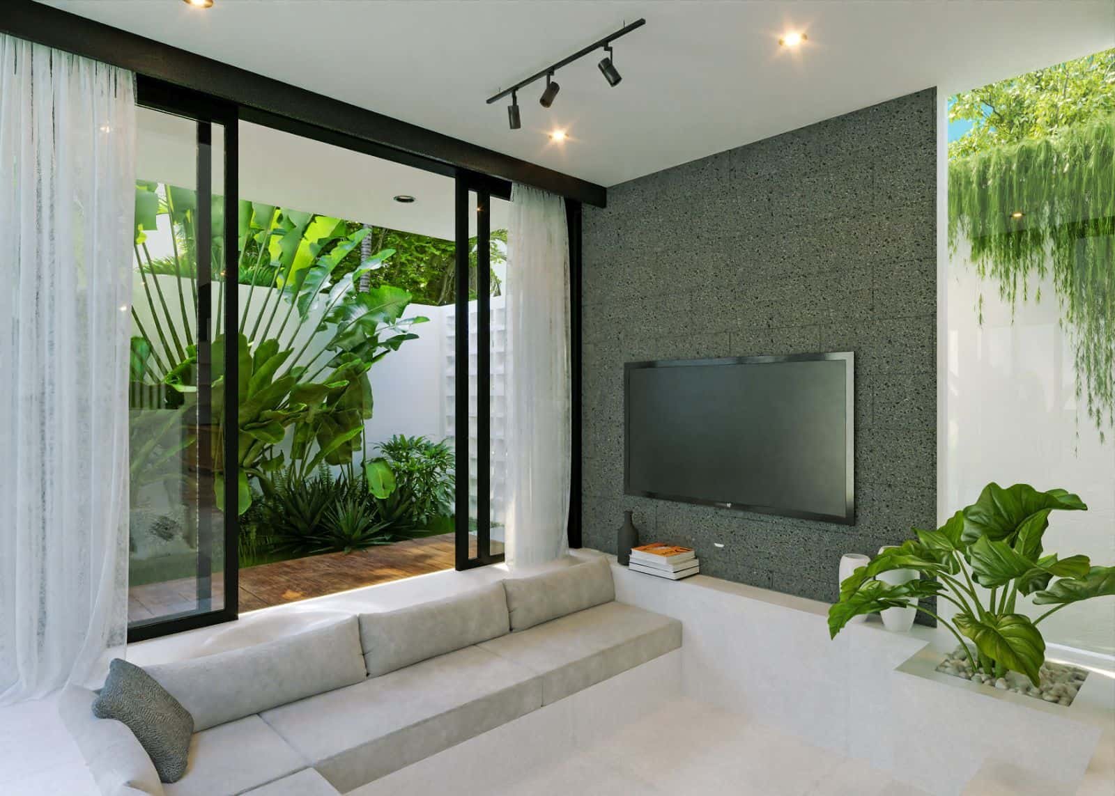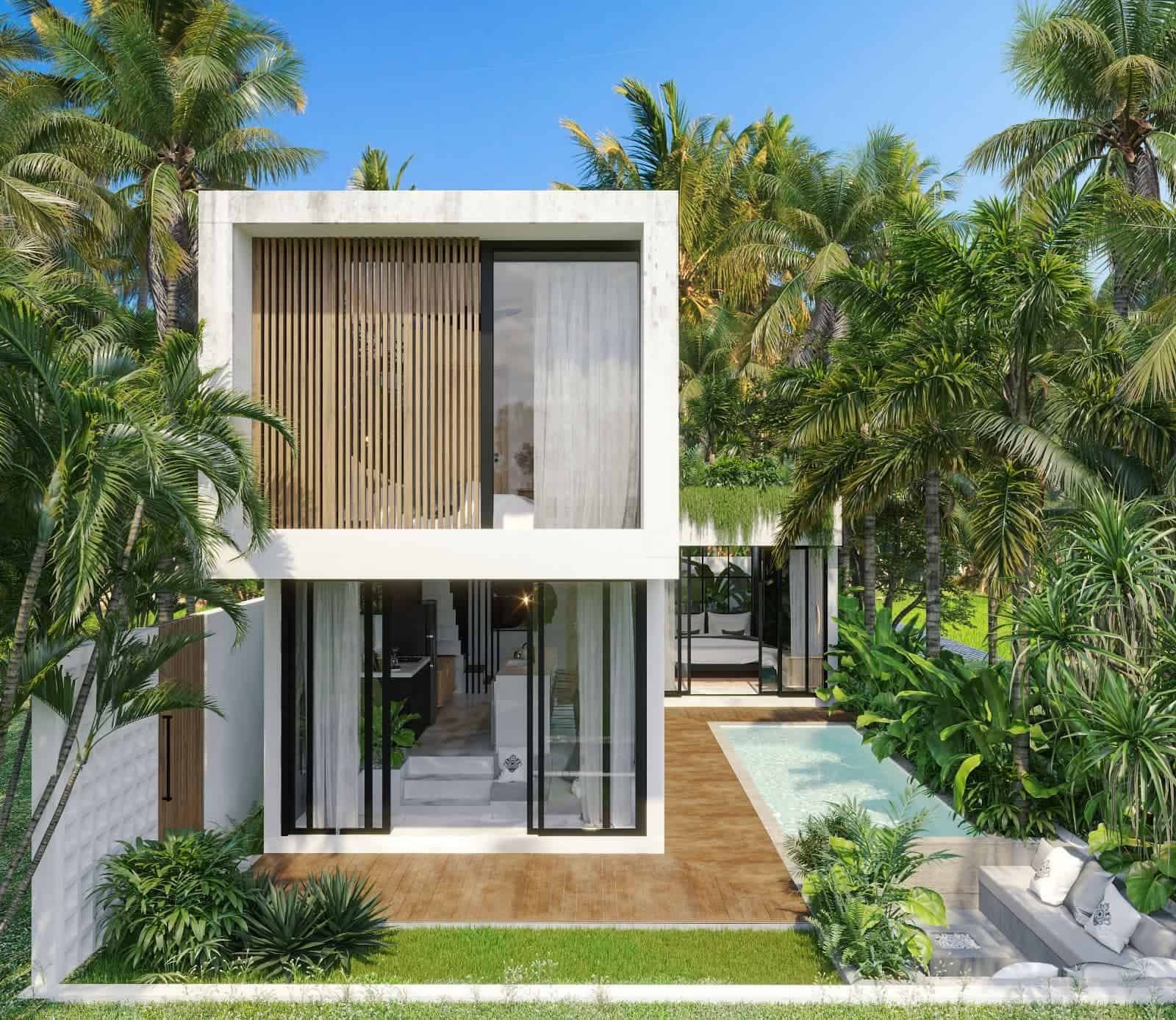 The white theme of these villas carries throughout the interior design, with eye-catching details and finishes spread throughout these cozy villas.
