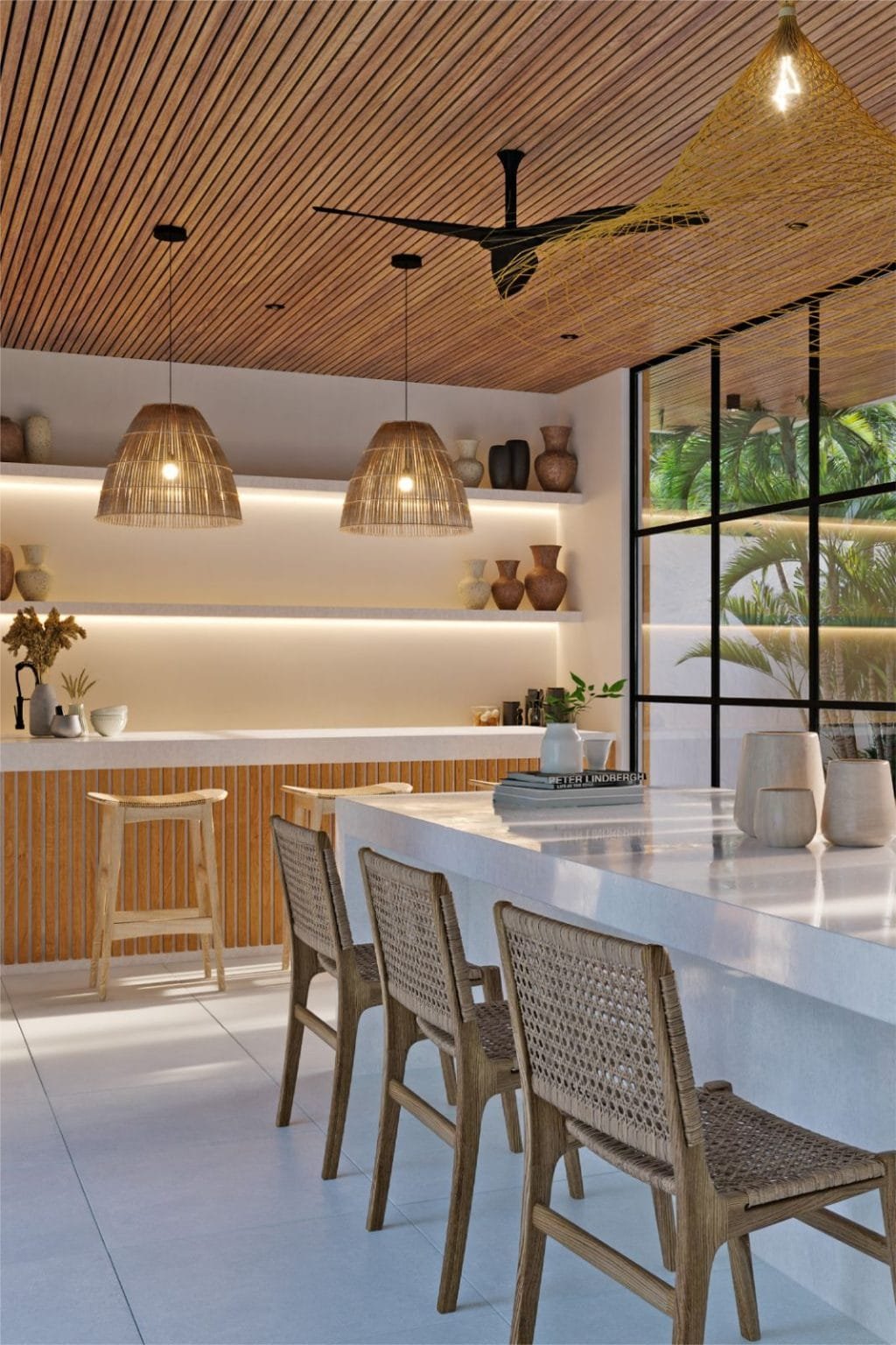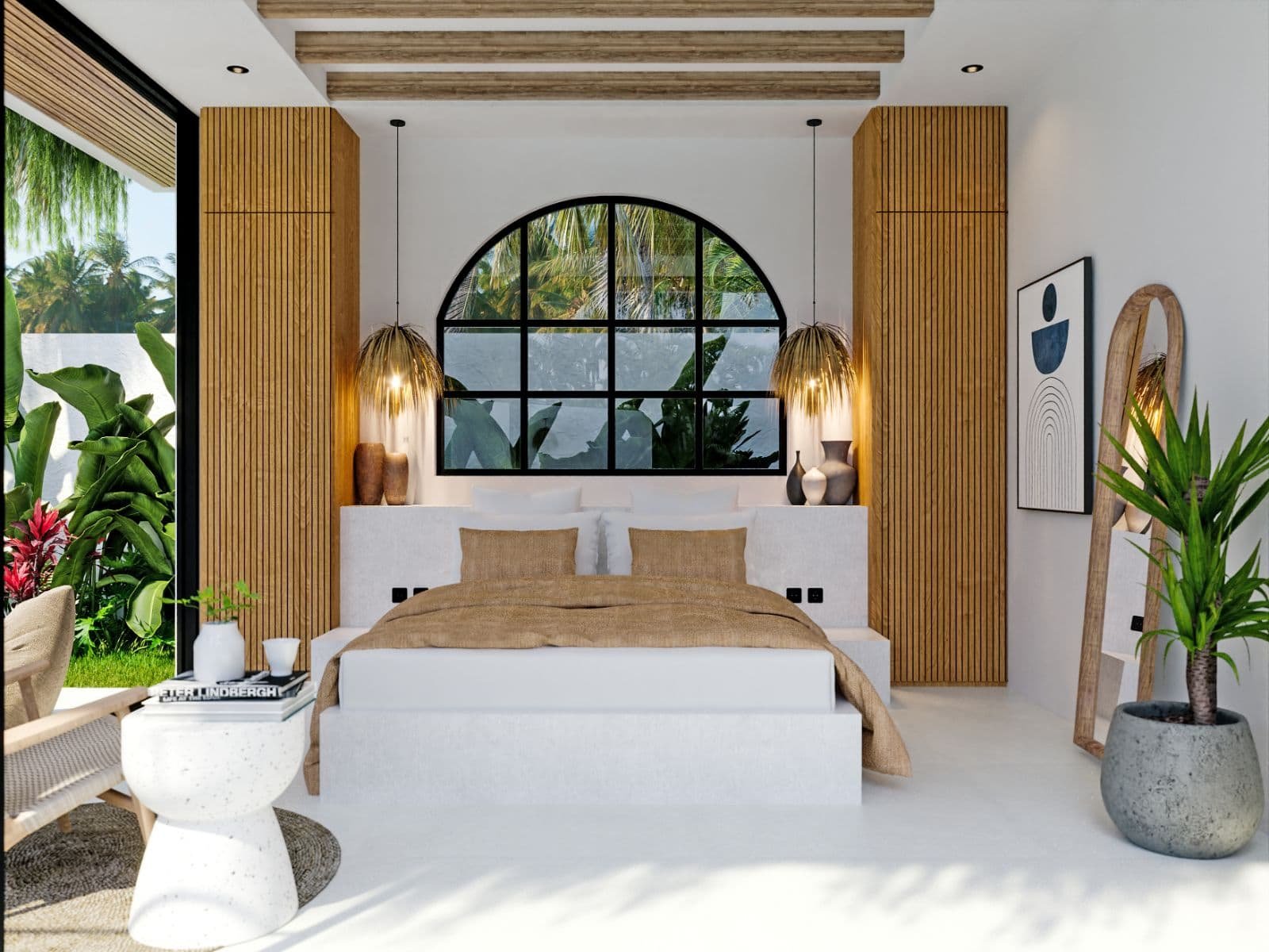 The white theme of these villas carries throughout the interior design, with eye-catching details and finishes spread throughout these cozy villas.