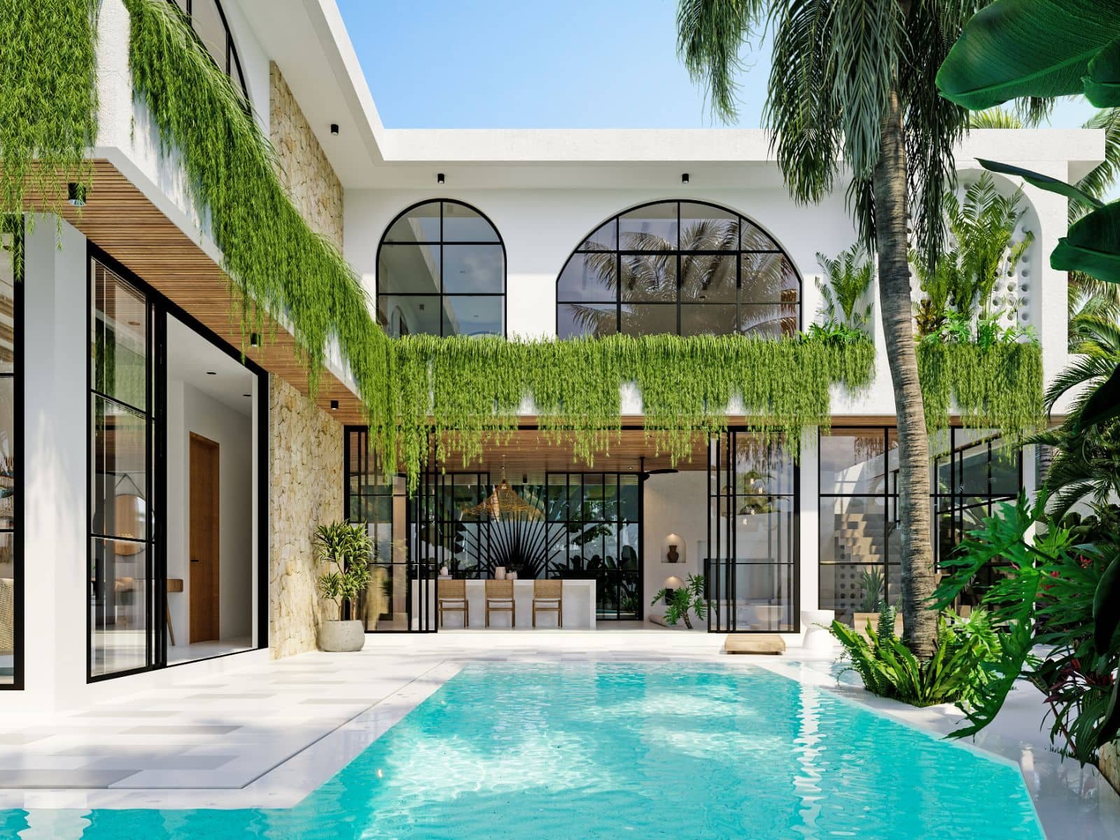 Our smart 5-bedroom home is the perfect holiday rental for Kolkata. With a double-height glass facade overlooking the pool, modern interior design and outdoor bathroom, these luxury villas are an exceptional rental investment.